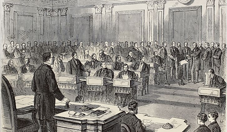 Ben Butler Gives The Opening Prosecution Argument In The Senate Impeachment Trial Of Andrew Johnson The Reconstruction Era from i1.wp.com Andrew johnson was a lifelong democrat and slave owner who won a place alongside abraham lincoln on the 1864 republican ticket in order to still, the impeachment trial had its value. The case moves to the senate. Andrew johnson was the first american president to be impeached, and his 1868 trial in the u.s. For the first time in u.s. In light of clinton's impeachment trial alistair cooke recalls the only other of its kind. (cnn) andrew johnson faced overwhelming opposition in the house and the senate, and he stood in the way of a reconstruction that would have done more to help former slaves. After being impeached, president andrew johnson survived his 1868 senate trial by just one vote. The roots of the impeachment of andrew johnson lay not only in the increasingly hostile relations between himself and congress, but in a peculiar feature of republican reconstruction policy itself.
